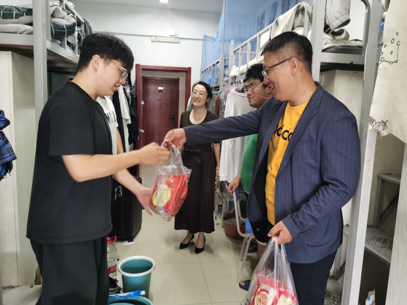10月6日中秋佳节当天,国庆中秋双节假期正酣,物理与新能源学院党委书记郝思瑾、党委副书记刘宇携毕业班辅导员深入学生宿舍,开展中秋慰问活动,为100余位留校学子送上月饼与节日祝福,让异乡过节的学子感受“家”的温暖。