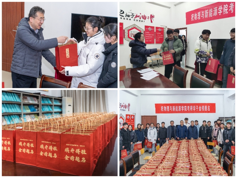 2025年全国硕士研究生招生考试即将拉开帷幕,为切实帮助考研学子舒缓备考压力、筑牢考研信心,12月4日,物理与新能源学院精心组织考研学生慰问活动,为奋战在备考路上的学子送上暖心礼包与诚挚祝福,全力助力学子在寒冬研途勇攀高峰、成功折桂!