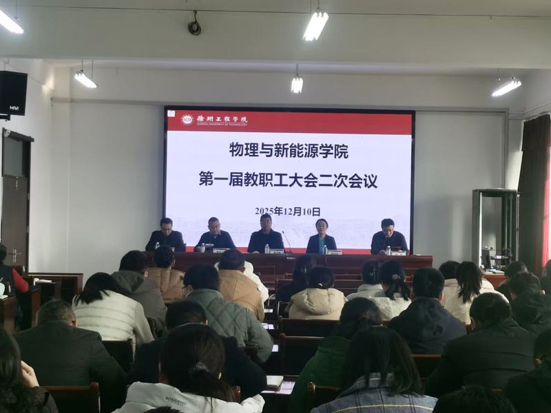 2025年12月10下午,物理与新能源学院第一届教职工大会第二次会议在敬知楼309会议室召开。副校长黄传辉出席会议并讲话,学院全体教职工参会。会议全面总结过去一年工作,系统谋划未来发展蓝图。