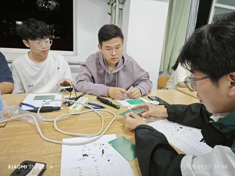 学习体验制作电子作品。实际操作环节,同学们争相参与,焊接电路板,将理论付诸实践,落实了实践与理论相结合的行动指南,也更深入地了解了电子产品的制作原理和方法。